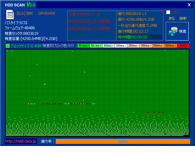 IBM純正の中古ハードディスクです。 詳しい仕様については、表をご確認下さい。 ローレベルフォーマットを行い、HDD SCAN V2.0を実施したところ、不良クラスタを確認しております。 その為、ジャンク扱いです。 細かなシリアルナンバー等は実物とは異なる場合がありますのでご了承下さい。