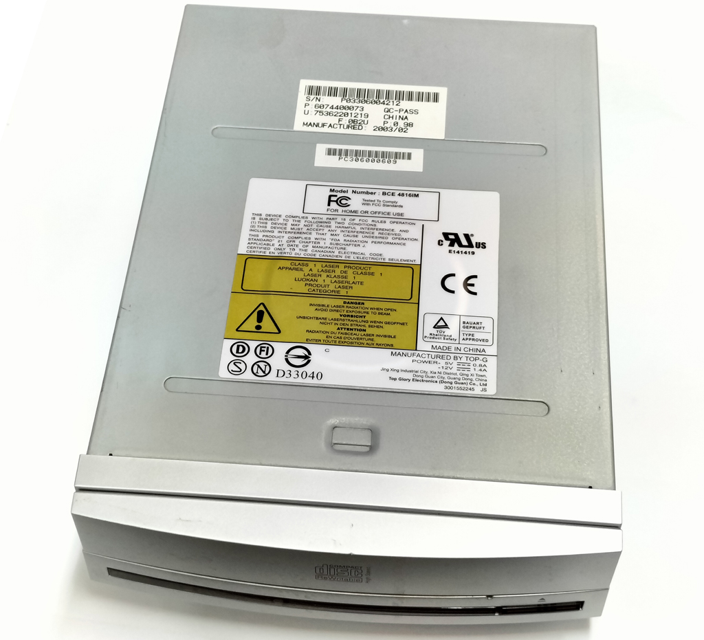 BTC製の中古のCD-RWドライブです。 接続インターフェイスはIDEです。 製品型番は、BCE4816IM になります。 ベゼルの色はシルバーです。 読み込み動作を確認しています。トレーが出しずらいので、ジャンク扱いでお願いします。