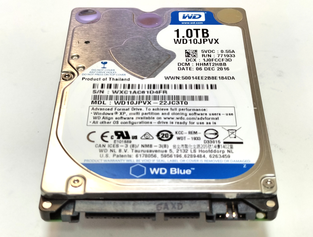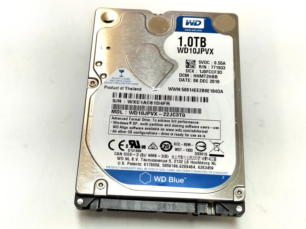 Western Digital製のハードディスク WD10JPVX-22JC3T0 です。