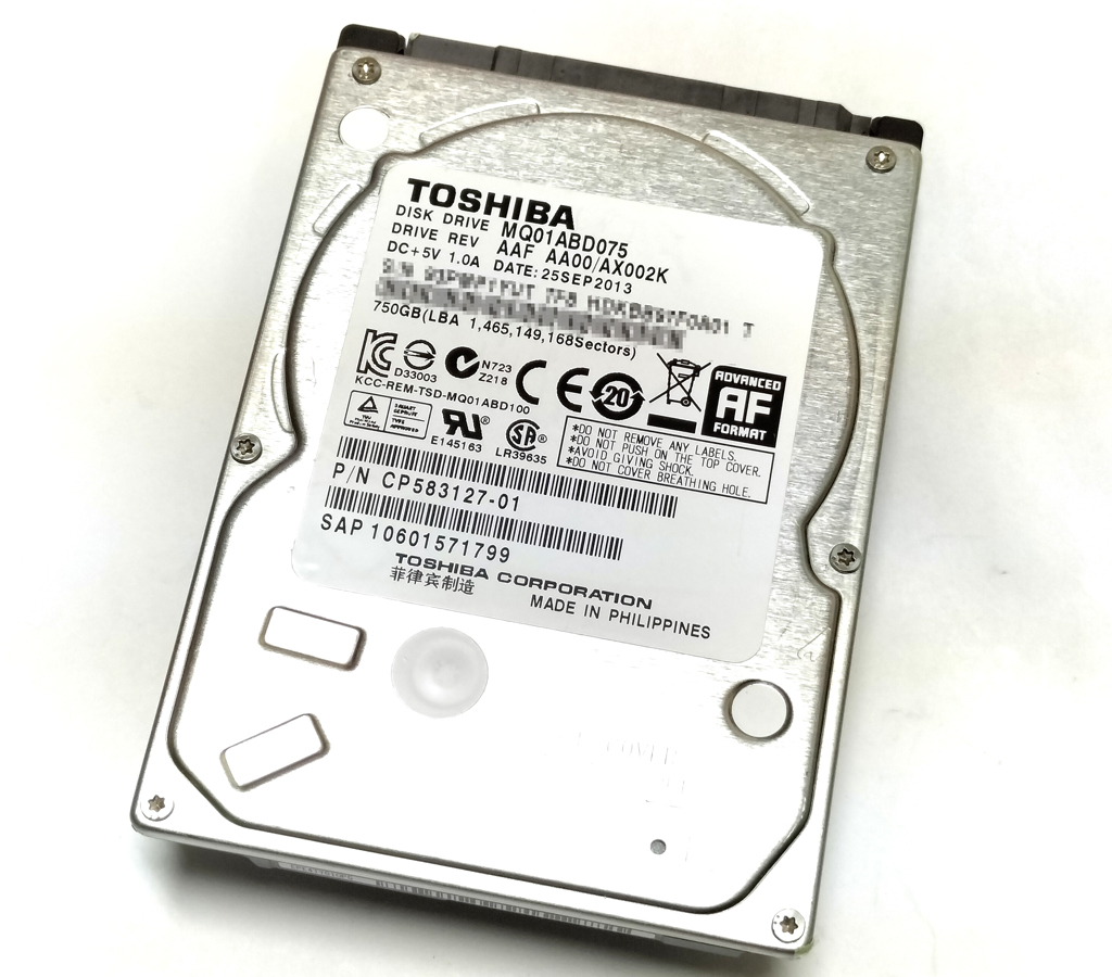 TOSHIBA MQ01ABD075 750GB 2.5インチ 9.5mm厚 SATA300 5400rpm