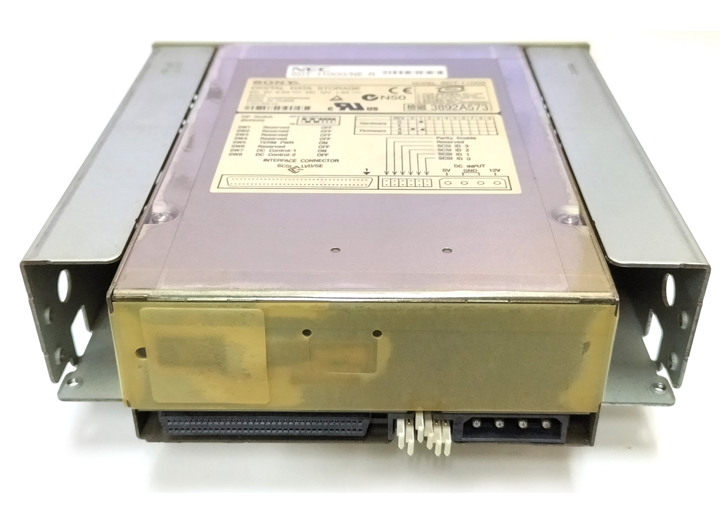 NEC Express5800シリーズのPCサーバ用の内蔵型DDS4 DATドライブです。 型番は、SDT-11000/NE-R となります。 ドライブ自体は、SONY製(SDT-11000) になります。 非圧縮時:20GB、圧縮時:40GBのバックアップが可能です。 接続インターフェースは SCSI 68ピンです。 通電と、テープメディアの挿入、排出に問題がないことを確認しています。 Windows XP機と接続しましたが、ドライバがあたって正常に認識されている状態です。 クリーニングテープを使ったクリーニング、そして読み込み書き込みテストを行い正常であることを確認しています。 付属品はありません。
