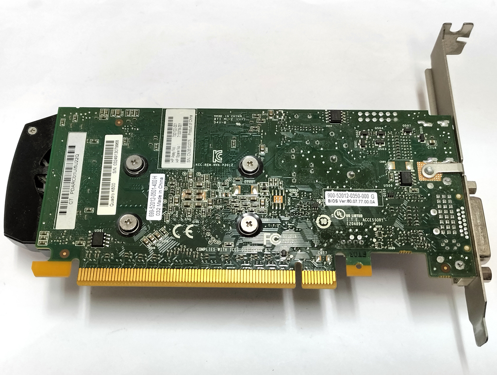 HP 700102-001です。 NVIDIA Quadro K600 のOEM品です。 搭載メモリは1GBで、PCI-E x16対応です。 PCワークステーション用のビデオカードとして販売されていたものです。 外部電源不要、ファンレスのビデオカードです。 動作確認として、BIOSの画面まで問題なく表示できることを確認しています。 細かな点までチェックしていませんので、ジャンク扱いとさせていただきます。