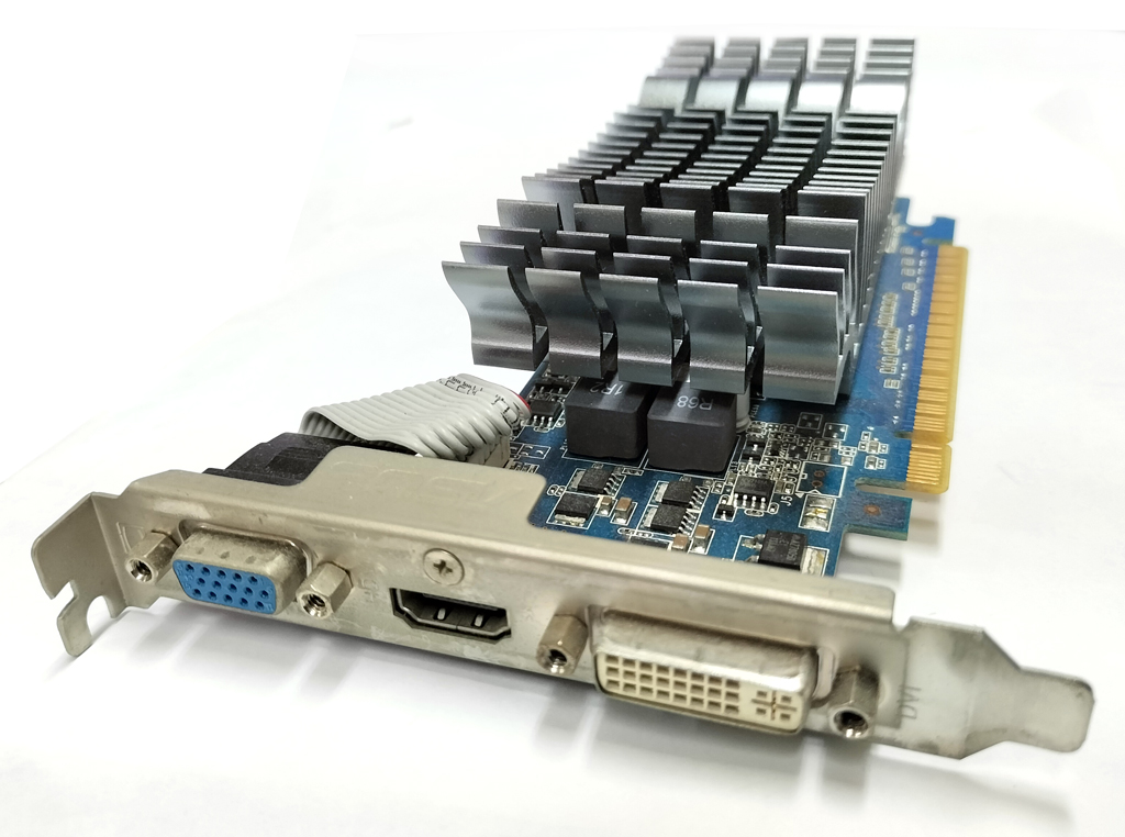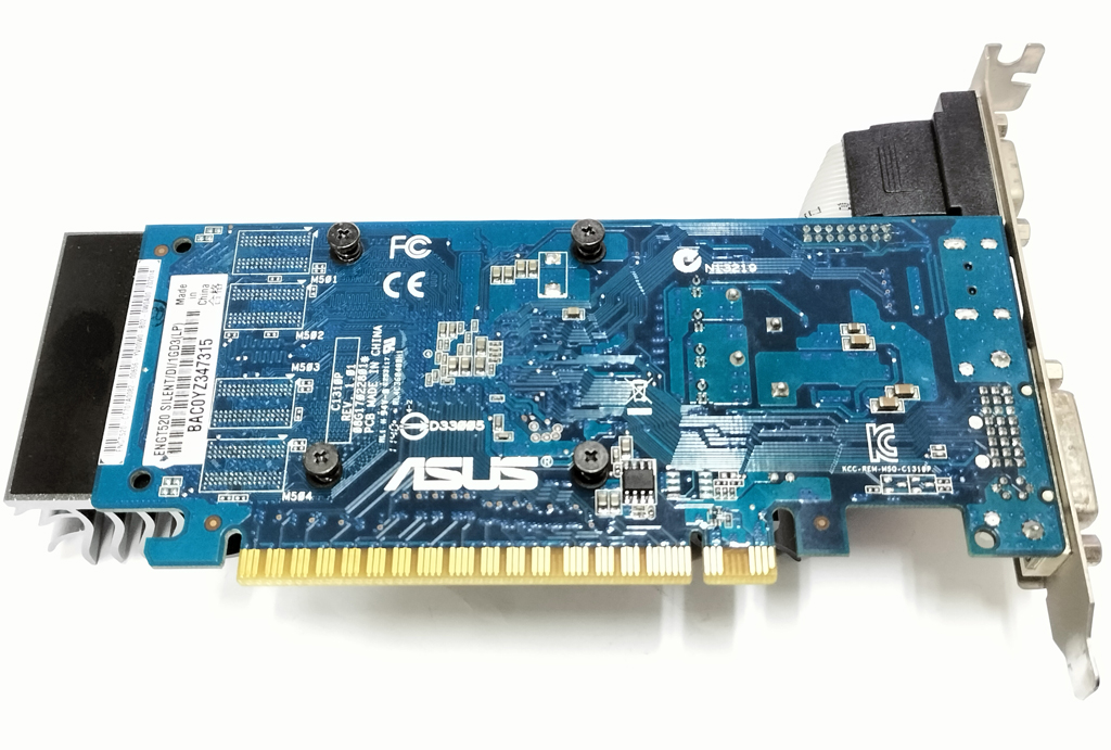 Asus ENGT520 SILENTです。 NVIDIA GeFORCE GT520搭載、メモリ 1GBB、PCI-Express x16という使用です。 外部電源不要、ファンレスのビデオカードです。 動作確認として、BIOSの画面まで問題なく表示できることを確認しています。 細かな点までチェックしていませんので、ジャンク扱いとさせていただきます。